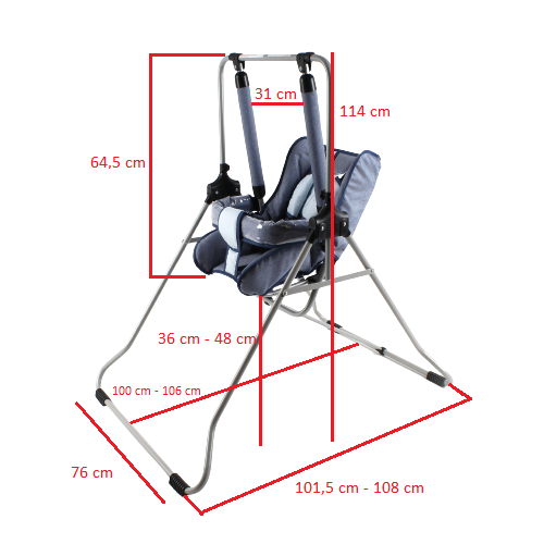 Huśtawka N1 GOLD wyposażona jest w barierkę, pięciopunktowe szelki zabezpieczające dziecko przed wypadnięciem, regulowane oparcie posiadające specjalne zabezpieczenie przed złożeniem oraz wysokiej jakości welurowy materiał oraz dodatkowe wypełnienie z gąbki, którym wyłożone jest całe siedzisko. Huśtawkę złożoną możesz śmiało postawić za drzwiami by nie zajmowała dużo miejsca.